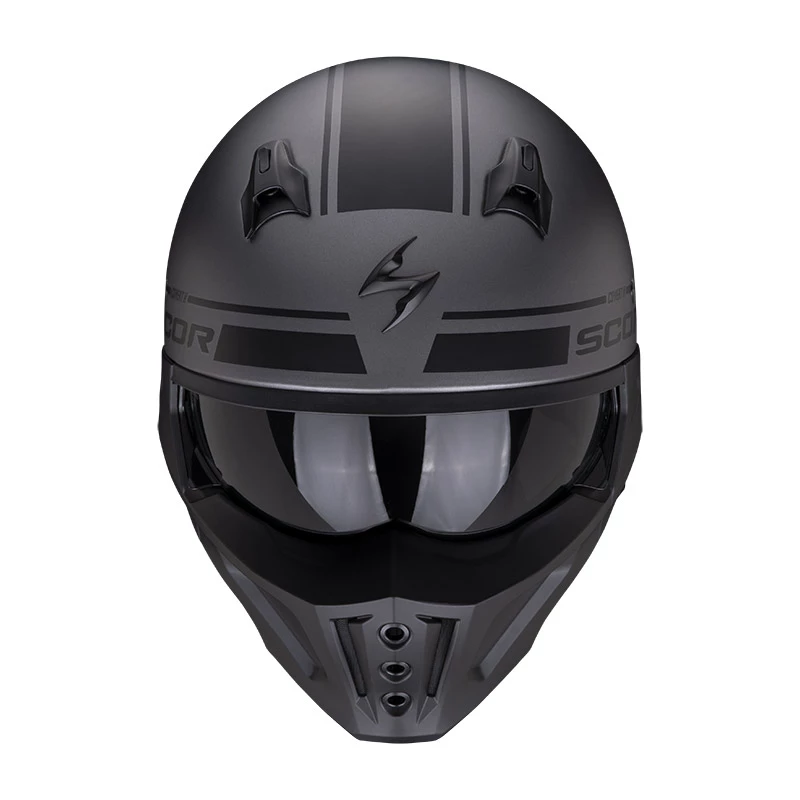 Mentoniera rimovibile per passare a un casco stile JET.